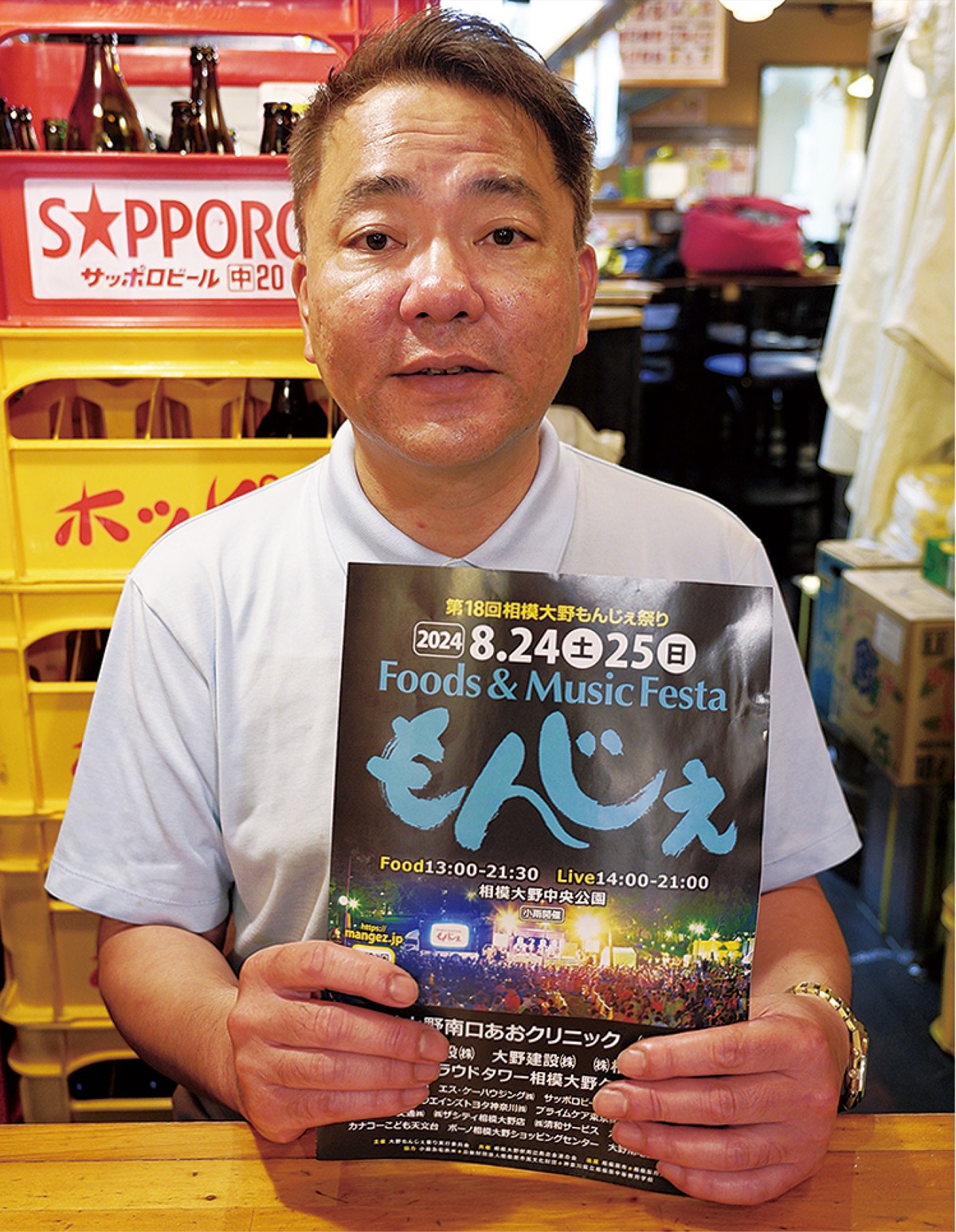 地元グルメと音楽の祭典、第18回相模大野もんじぇ祭りが8月24日(土)と25日(日)に相模大野中央公園で開催される。参加飲食店32店舗で構成される同実行委員会の斉藤誠委員長に祭りへの思いを聞いた。