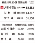 相模原市内全体の投票率は53・84%で前回より2・23ポイント減。南区内の投票率は55・40%で、前回旧14区は59・18%、旧16区は55・04%だった。