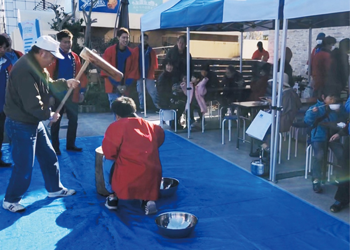 地域住民への感謝の思いを込めて毎年この時期に企画されているもので今年で6回目。当日は誰でも参加可能で、つきたての餅を食べることができます。また豚汁の提供や「相田みつをカレンダー」のプレゼントもある(数量限定)。