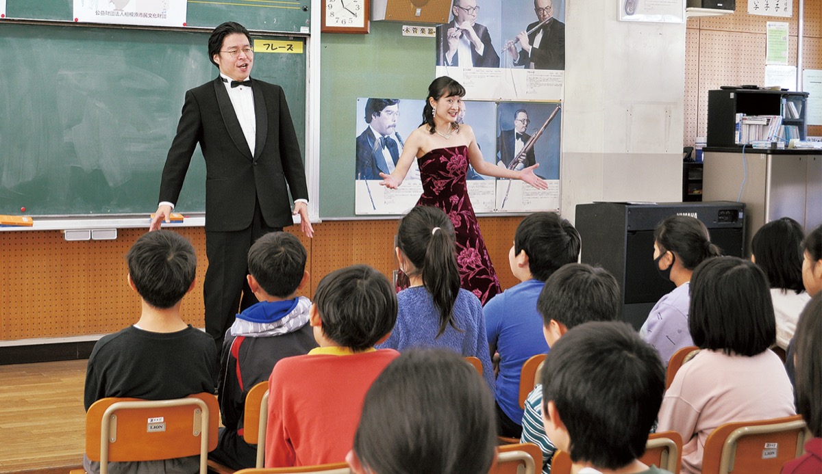 この事業は相模原音楽家連盟に所属するプロの音楽家が、演奏を通じて音楽の授業を実施するもの。2008年に始まり、クラッシック音楽に触れる機会が少ない児童に対し、新しい音楽との出会いを提供することを目的としている。年に8、9校で実施。