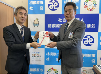 学校法人相模女子大学(相模原市南区)は12月19日、賞味期限が近づいた防災備蓄食品8000食を相模原市社会福祉協議会に寄贈した。寄贈された食品は、地域の子ども食堂や無料学習支援団体、ホームレス支援団体など約50団体に配布される予定だ。