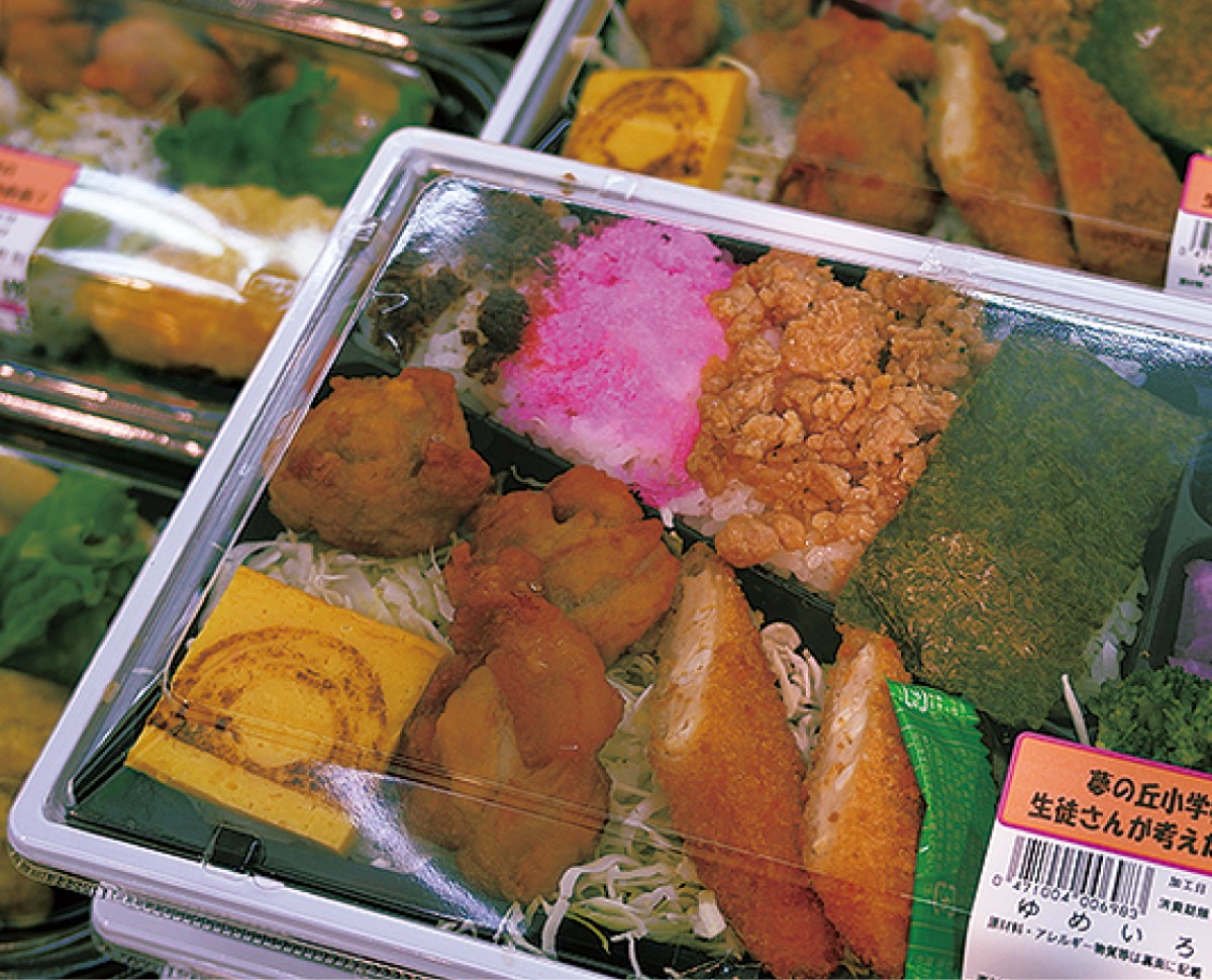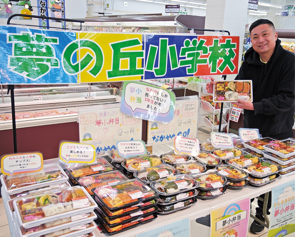5年3組の児童は総合の授業で「地域の人々の健康」を学び栄養素についてや校内の給食提案、近隣スーパーとのコラボ弁当など、地域に健康を広げる活動をしてきた。新鮮市場なかや相模原当麻店では児童が考案したお弁当6種類を10食ずつ販売している。ウインナーを抜いたらダムが決壊する「夢のダムカレー弁当」、「何が入っているのかワクワクしてもらいたい」と、巨大おにぎりが入った「夢の爆弾おにぎり弁当」など、斬新なアイディアの弁当が並ぶ。