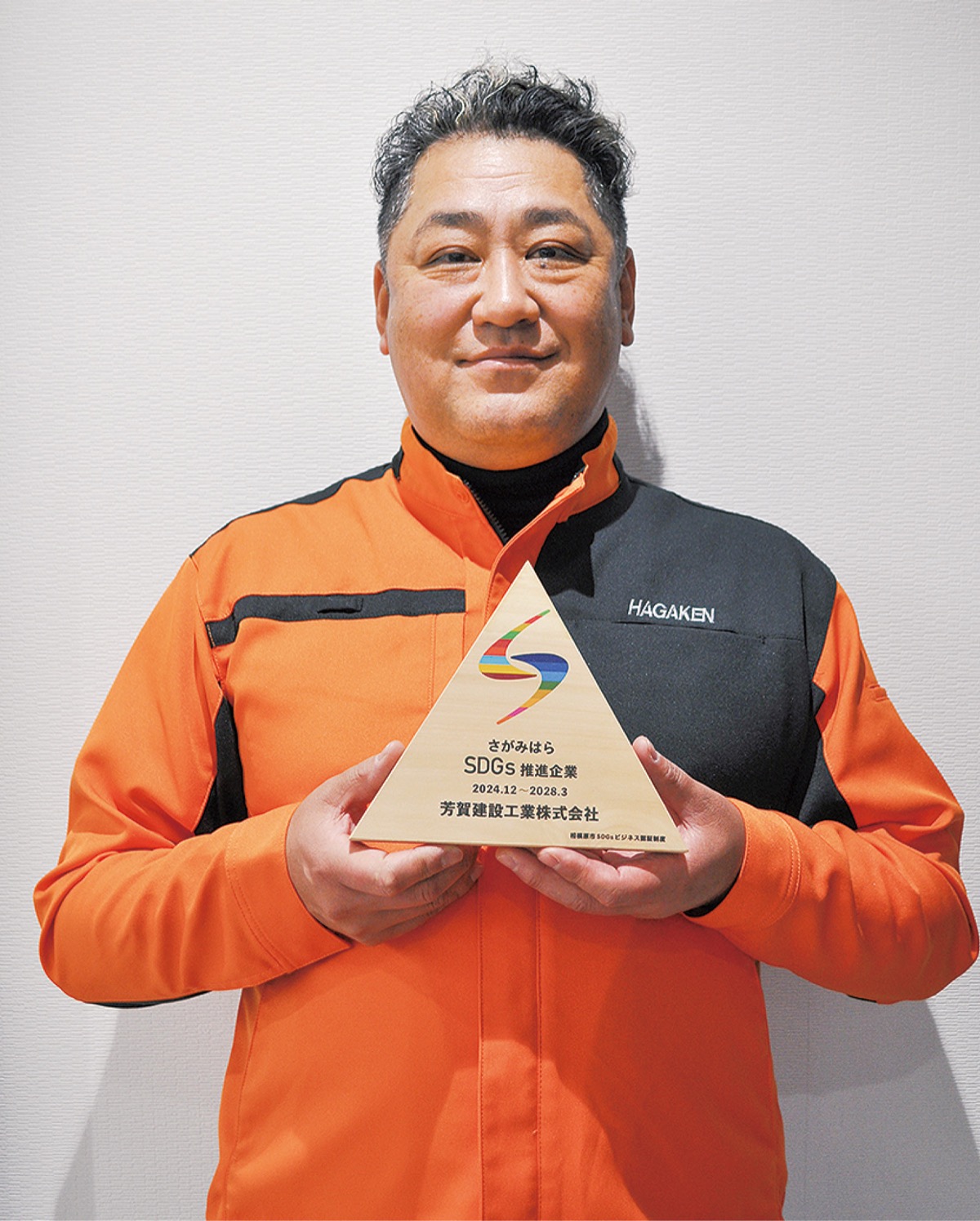 23年にさがみはらSDGsパートナーに登録。「エコアクション21」での取り組みがSDGsにもつながることを知った。「大きい会社だけがやることだと思っていた。でも自分たちでできることを継続していきたい」と代表取締役の芳賀錠二さんは笑う。