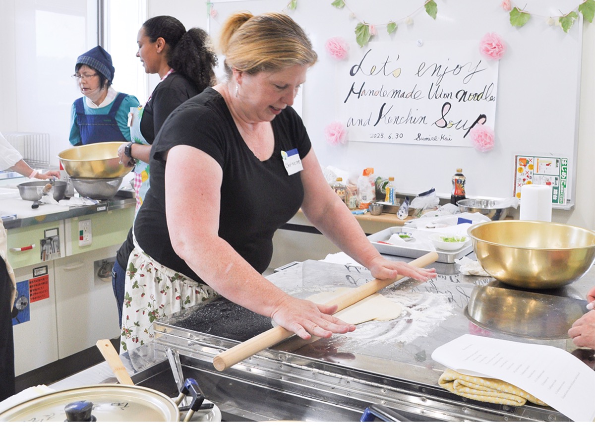 市内で異文化交流などを行う市民団体すみれ会とフレンドシップ相模原、キャンプ座間の軍人軍属の配偶者団体ZaCSAが6月30日、麻溝公民館で手作りうどんの会を行った。