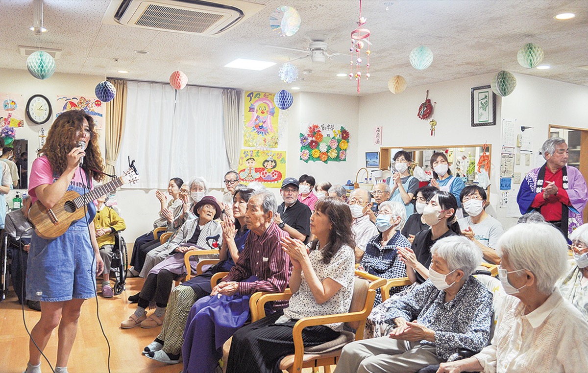 グループホームなどを経営する一般社団法人東林間輝(東林間)で9月13日、敬老会が行われ相模原市の名誉観光親善大使で歌手のタブレット純さんが歌謡ショーを行った。敬老会は利用者とその家族に楽しんでもらうため、毎年同所で開催されている。