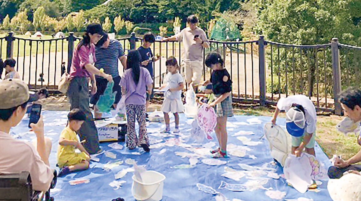 ブルーシートに散りばめられた魚の絵を釣り竿の先にあるマグネットで取るという、釣りに見立てた遊び。同所で2004年から21年まで、区内在住の野口徹也さんにより開催されていたイベントだ。野口さんが高齢により、対応が難しくなったことからイベントはそのまま終わってしまった。その話を知った舩橋真理さん=人物風土記で紹介=が「根付いているものがなくなってしまうのは寂しい」と野口さんから活動を引き継ぎ、23年に復活した。