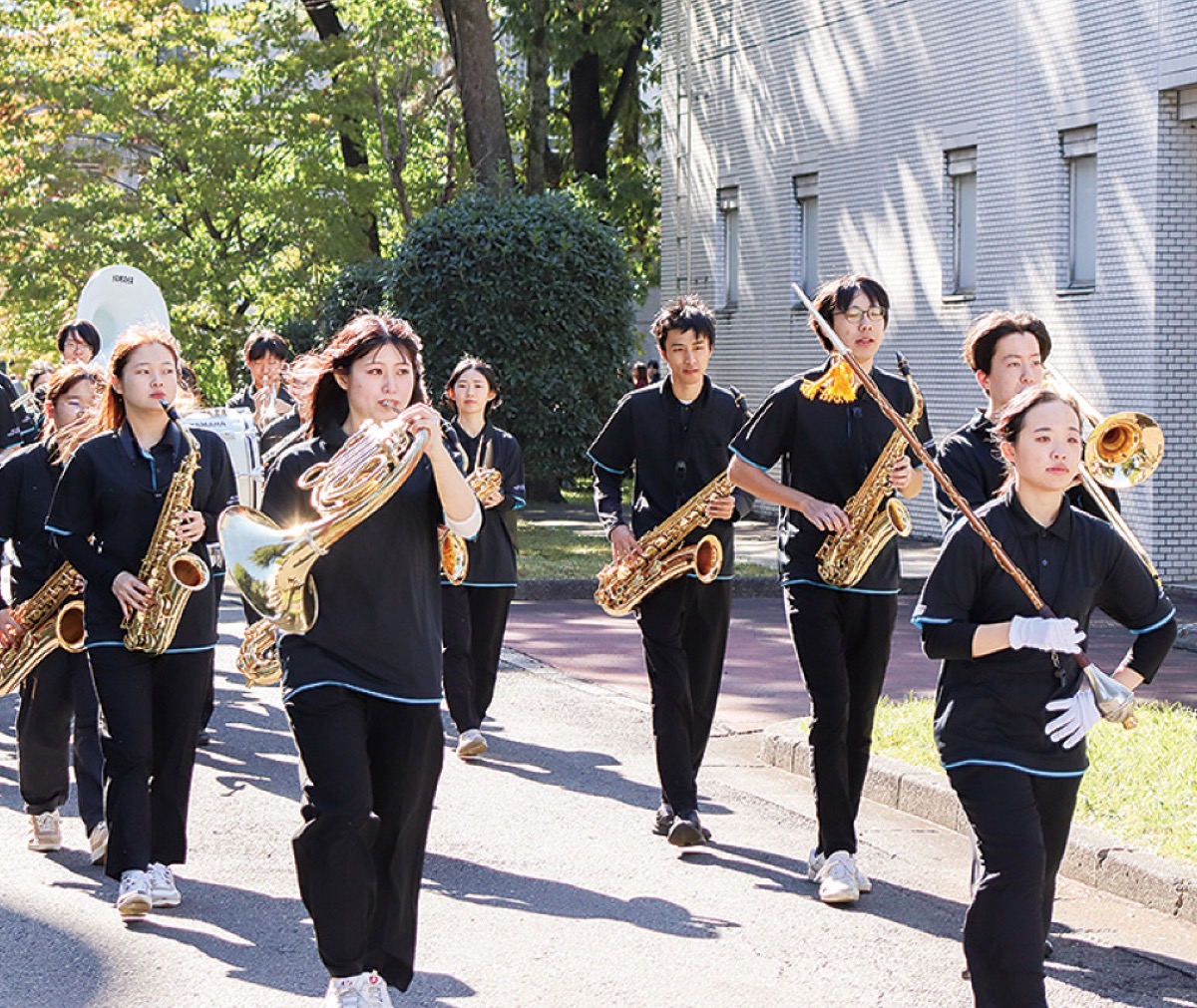 地元に住む清水さんも入学前に「毎年見ていた」ひとり。「パレードは地域の人に身近な存在なのかなと思う」と語る。羽石さんは「学内だからこそクオリティを上げたい」と熱を込める。二人は「演奏も足並みも揃ったパレードをぜひ見に来て下さい」と呼びかけた。パレードは2日(日)、午前10時15分から。