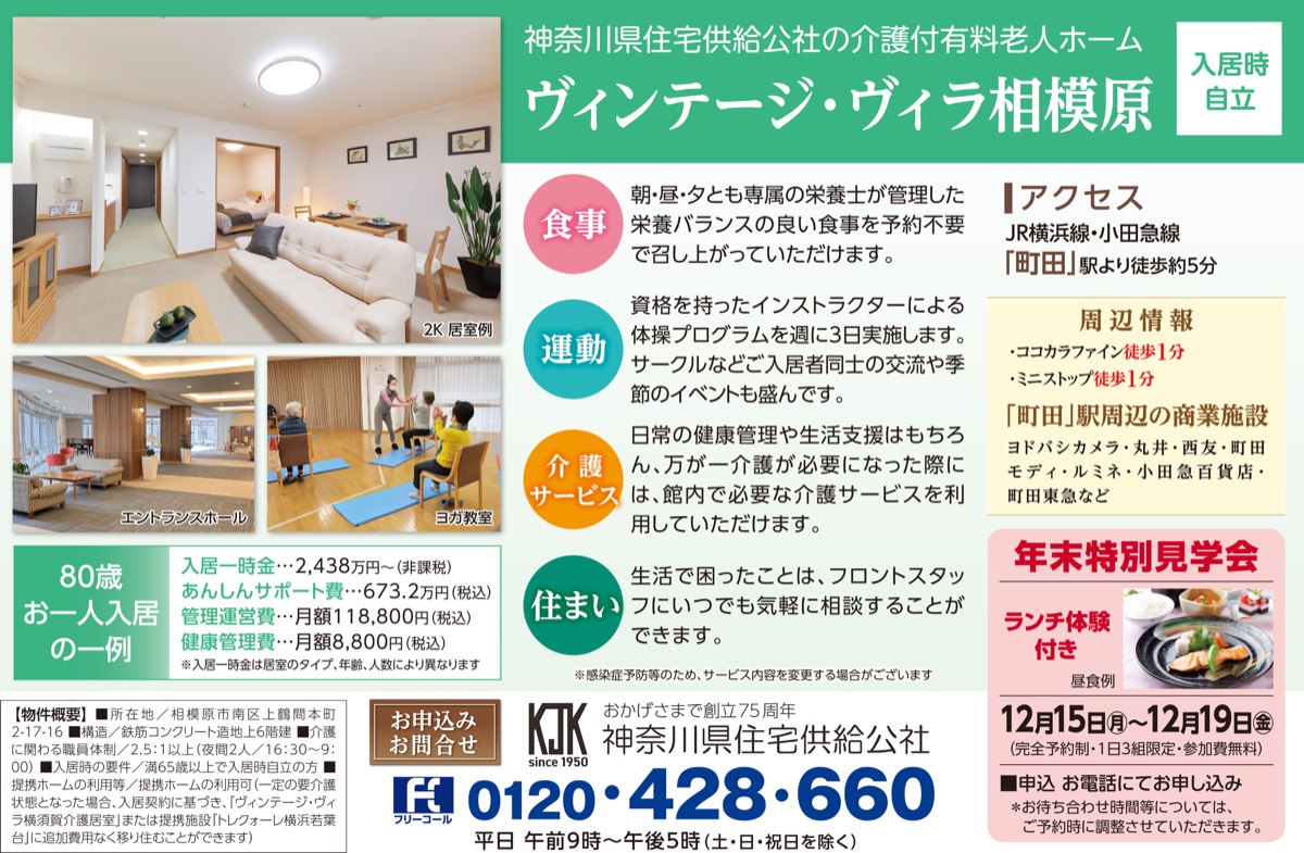 神奈川県住宅供給公社の介護付有料老人ホームヴィンテージ・ヴィラ相模原(入居時自立)