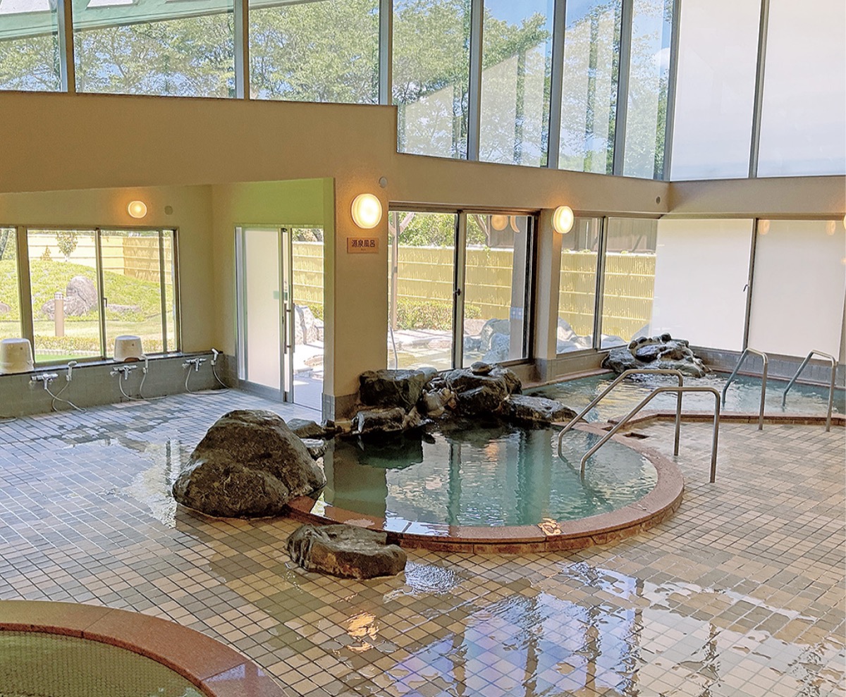 同温泉は開放感満点の大浴場、里山の絶景を一望できる露天風呂、ドライサウナ・フィンランド式ロウリュサウナでリフレッシュできる。