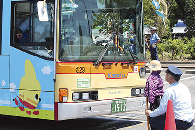 夏休みに入るにあたり、小学生に事故防止への意識を高めてもらおうと7月21日、NPO法人ミハタ(南区相武台)と神奈川中央交通(株)相模原営業所、相模原南警察署が協力して、交通安全教室を実施した。