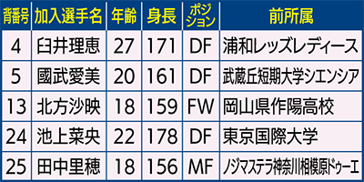 • (後列左から)池上菜央、國武愛美、臼井理恵、(前列左から)田中里穂、北方沙映の各選手