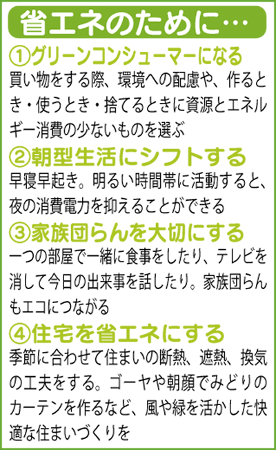 こうした状況において、必要となるのは“節電”の心がけ。市立環境情報センター(中央区富士見)に『今私たちができること、やるべきこと』について尋ねてみた。