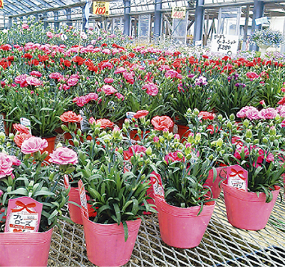 津久井湖畔の『花工房しまざき』では、母の日の贈り物に最適な「寄せ植え・可愛らしいカゴ」等、人気のお持ち帰りカーネーションを大好評発売中。5号鉢カーネーションを千円で受付。全国発送も可能。種類豊富な中から心に残る贈り物を探してみては。