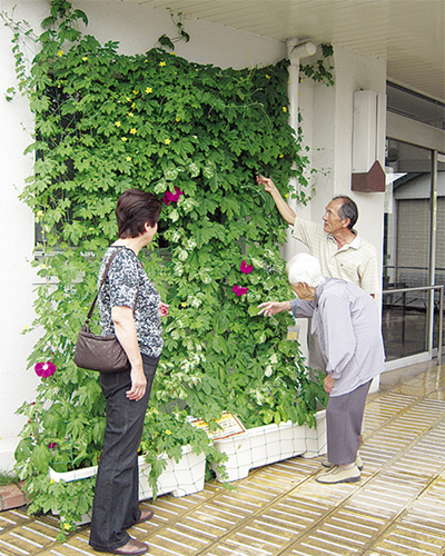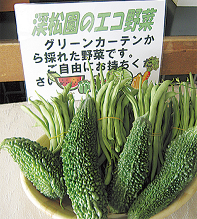 老人福祉センター渓松園(緑区大島)では現在、節電と緑化対策の一環として緑のカーテンを実施している。そこで植えられ、収穫されたゴーヤやインゲンを来園者に無料で配布しており、「柔らかくておいしい」と好評を博している。