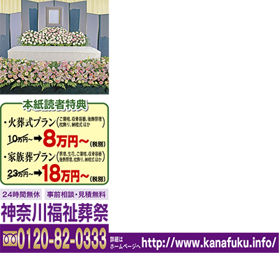それぞれに合った本当に納得のいく葬儀を提供する神奈川福祉葬祭。「悲しみに暮れるご家族の手助けをしたい」と事前相談、見積りは完全無料。さらに費用も良心価格。本紙を見て申込むと火葬式が8万円、家族葬が18万円に。詳細はお電話を。
