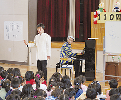 今年創立110周年を迎えた市立旭小学校(橋本・中島道子校長)で今月8日、記念コンサート「世界一受けたい授業in旭小」が行われた。