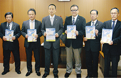 相模原商工会議所会員らが集う都市産業研究会(都産研)が新まちづくり案をまとめ先月17日、提言書を加山俊夫市長に提出した。高齢社会対策や文化、産業、自然、市民を「つなぐ」まちづくりをもとに、持続可能な社会を実現させる内容になっている。