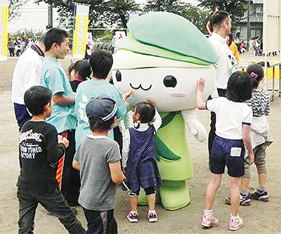 ミウルは、誕生以来、区内のイベントに多数参加している。日によっては、一日3件”はしご”することもあるという。そうした中、10月28日に行われた藤野ふる里まつりにも参加。地元を中心に創作音楽活動を行うガイネさん(藤野在住)によって作詞作曲されたミウルのテーマ曲『この地球を潤す』が披露された。ガイネさんは「可愛いキャラクターで、前々から作りたいと思っていた。『緑区から潤す』という外に発信するキャラクターテーマが僕の想いと一致した」と製作した経緯をそう話す。