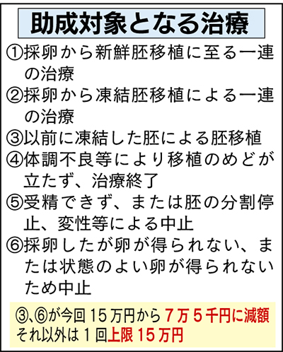 体外受精や顕微授精を受けた夫婦に対し、医療保険が適用されない治療費の一部助成を行う「特定不妊治療費助成制度」。厚生労働省が同制度を一部改定したことに伴い、相模原市でも4月1日から、助成額の適正化を図ることを目的に一部治療の助成額を上限15万円から7万5千円に引き下げることとなった。