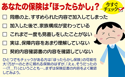 病気や死亡など、万が一の時のために入っている保険を放っていませんか―。”ほったらかし保険”では、いざというとき保障が十分でないことも。春秋社橋本ショップに、保険の見直しポイントを伺った。