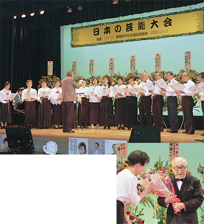ボランティアで老人施設を慰問し、歌や踊り、郷土芸能などを披露して入所者を楽しませている「和歌声会(水谷正隆会長)」。発足して今年35周年を迎え、5月18日にはあじさい会館大ホールで記念の芸能大会を開催、会場を埋めた大勢の観客の喝采を受けた。