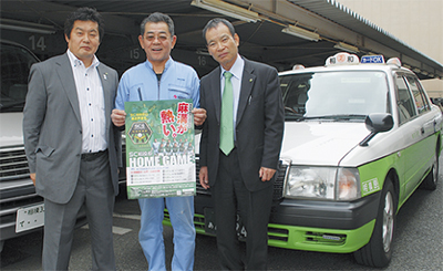 同施設会に加盟する市内19社約700台のタクシーにSC相模原のシールが貼られる。後援会の提携は県理容生活衛生同業組合さがみ原支部に引き続き、2団体目。「市全体でSCに関心を持ってもらえるよう、これからも色々な団体に協力をお願いしたい」と久野後援会長は話している。