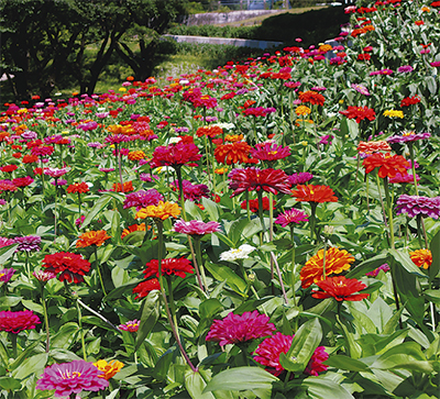 圧巻の5万本の百日草(ジニア)