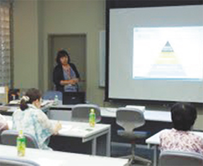 今回も女性の市民講座運営委員認定講師がセミナーを担当。建築塗装1級技能士、外装劣化診断士などの資格の認定講師が女性ならではの視点で判り易く説明する。「訪問営業で無理やり契約させられ、大幅値引きして契約。その場合、施行後すぐに不良施工に気づかず、3〜5年後にわかるのが多いのです。気づいた時には、会社はなくなっていたケースもあるので、業者の見極めが大切になります」など、実際の事例をあげながら、一般の消費者にも塗装の知識が得られる内容になっている。セミナー後には無料での塗装相談にも応じてくれ、参加者全員に「住宅塗り替え工事で失敗しないために読む本」を進呈中。
