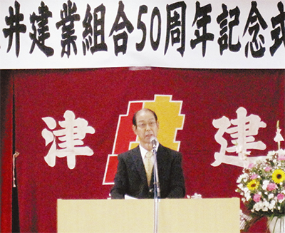 津久井地域を中心とする建設業者が加入する津久井建業組合(内藤政夫組合長、会員数370余人)がこの程、設立50周年を迎え、9月8日に津久井湖記念館で記念式典と祝賀会を開催した。式典の中で、会員間の一層の団結と時代に対応した取り組みを誓っていた。