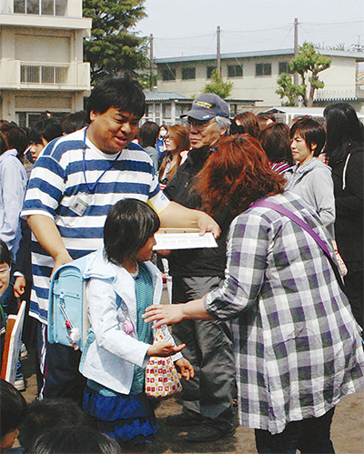 これは、災害時に児童や生徒だけの帰宅が困難な際、学校に来た保護者へ安全に子どもを引き渡せるよう、手順や経路を確認する訓練で、東日本大震災の経験を踏まえ、昨年より小・中学校合同で実施されている。年度当初、各家庭で「引き渡しカード」を学校に提出しており、学校はあらかじめ登録された保護者であるかを確認して、直接子どもを引き渡す手順になっている。共働きの家庭などは近隣住民同士で協力し合い、引き渡しに赴くケースもあるという。