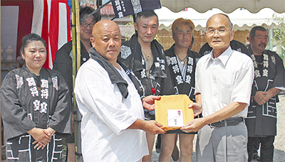 闘将皇は毎年、つくい中野夏祭りで神輿を担ぎ、終了後には道路清掃などの活動も行っている。今年も、26日・27日に開催された祭りに参加。受け取ったご祝儀の一部を「地域の福祉に役立ててほしい」と同協議会に寄付することに。今井会長は「地域の福祉のために使わせていただきます」と感謝の言葉を述べていた。