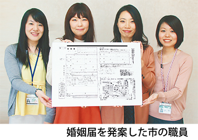 こうした「ご当地婚姻届」は、北海道の東川町などが結婚情報誌の企画で制作した例はあるものの、タレントによる作品を採用したのは全国でも初の試み。市によると、現場の若手女性職員の意見やアイデアなどを事業に積極的に生かすケースは、市としても珍しいという。