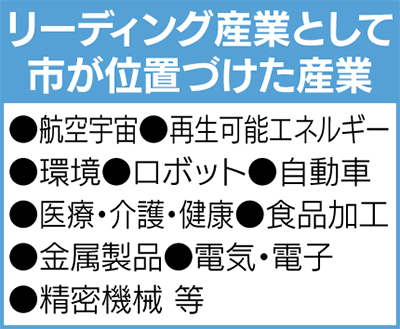 改正案では今後の成長が見込まれ、市の経済をけん引していく産業を「リーディング産業」と位置づけ、土地取得や建物建設などで奨励金を交付する。具体的には「航空宇宙」「再生可能エネルギー」「環境」「ロボット」などだ。土地や家屋に係る固定資産税や都市計画税についても軽減対象に追加した。