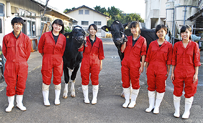ホル全共には全国から約400頭の乳牛が集まり、出品区分を18部に分けられ、審査・選賞される。同部の選抜メンバー6人(写真左から宮村悠希さん・1年、金子純子さん・3年、松本七海さん・2年、津留崎彩奈さん・3年、早瀬みなみさん・3年、小澤彩夏さん・1年)は21日に北海道へ出発する。共進会で、牛を歩行させるリードマンを務める津留崎さんは「部員や先生はもちろん、地域の酪農家の方々にもたくさん協力してもらったおかげでの予選通過。感謝の気持ちでいっぱい」とし、「当日は自分が緊張してしまうと牛にも伝わってしまう。平常心を心掛けたい」と意気込んだ。金子さんは「4月の大会で指摘された点を改善するために朝早くから体を洗ったり、歩行練習をしたりしてきた。今まで通りの調子で頑張りたい」と話した。