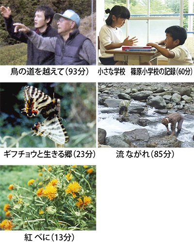 映画祭では、かつて岐阜県東白川村で行われていたという渡り鳥を捕えて食す「カスミ網猟」を追った『鳥の道を越えて』(今井友樹監督/2014年)を皮切りに、県指定天然記念物ギフチョウと、その関東地方唯一の生息地である旧津久井郡藤野町の住民との関わりを7年間の記録に収めた『ギフチョウと生きる郷(さと)』(能勢広・矢島仁作品/01年)、03年3月、在校生6人の終了式をもって廃校となった篠原小学校(旧藤野町)の最後の一年間の学校生活を追った『小さな学校 篠原小学校の記録』(村上浩康監督/12年)、厚木市や愛川町などを流れる中津川で生物保護と研究に取り組む二人の年配者を、01年から10年間にわたり追い続けた『流 ながれ』(村上浩康監督/12年)、紅の精製工程を描き、口紅や染料として使われるその歴史や魅力を伝える『紅 べに』(佐々木麻衣子監督/16年)。さらに『日曜日の子供たち』(堀田泰寛監督/1980年)、『子どもは風をえがく』(筒井勝彦監督/2015年)、『生命の誕生・絶滅危惧種日本メダカの発生』(豊岡定夫監督/15年)を加えた全8作品のドキュメンタリーや文化記録映画を上映する。実行委では、「受賞歴のあるそうそうたる作品が揃っているので、ぜひ観に来てほしい」と話している。また、今後は市民などからも作品を募り、地域参加型の催しとして継続していきたい考えだ。