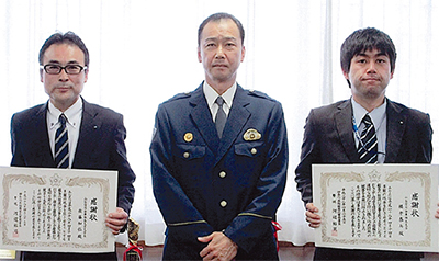 相模原北警察署(河辺裕司署長)は4月25日、振込め詐欺を未然に防止したとして、山梨信用金庫橋本支店の佐藤和仁支店長、営業担当の櫻井恭兵さんに感謝状を贈呈した。