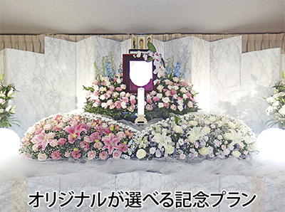 人気なのがご家族や近親者20人程度で通夜、告別式を行う「家族葬プラン」。幅2mの豪華な生花祭壇が特長で、生花のカラーや祭壇デザインをお好みで選べる。葬式に必要なことは全て含まれ(詳細は同社HP参照)、料金は29・9万円(通常32万円・税別)。12・5万円(税別)の火葬式プランは1万円相当のお別れ花のサービスも。ともに2回分の搬送料込なのも嬉しい。その他に豪華生花祭壇が付いた一日葬、一般葬等、家族スタイルに合わせたプランが用意されている。