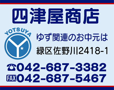 今年のお中元は地元の名産を!佐野川の四津屋商店は現在、藤野の大人気特産品『ゆず』関連商品の発送を承っており好評だ。