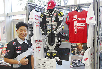 宮上小学校、旭中学出身のオートバイレーサー”コヤマックス”こと小山知良さん(34)=東橋本在住=が、今年7月に開催された「鈴鹿8時間耐久ロードレース」(8耐)出場時に実際に着ていたライダースーツのほか、サインが入ったTシャツ・帽子などの大会グッズが現在、橋本郵便局で展示されている。