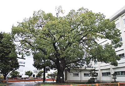 橋本駅前に立地する同校は、高層ビルやマンションが並ぶ一帯にある。正門付近にはクスノキの他、ヒマラヤスギやヒヨクヒバ、クロマツなど、多くの樹木が植えられ、都会のオアシスとして長年、通行人の目を癒やしてきた。その中でも一際大きいクスノキは「地域のシンボル」として親しまれてきた。