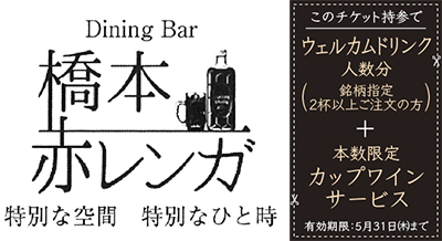 勢いのある街には決まって、疲れた体を癒し、明日の糧となる一杯を愉しめる上質な大人の酒場がある。4月に開店したダイニングバー『橋本赤レンガ』は、そんな「特別なひと時」を過ごすための「大人の隠れ家」だ。
