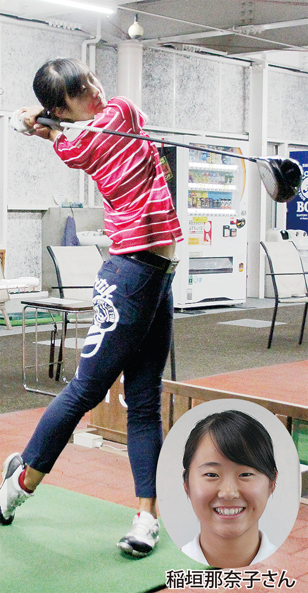 稲垣さんがゴルフを始めたのは8歳の時。水泳やスキーにも励んでいたが、両親の勧めでゴルフの練習をするうちに自然とのめり込んでいったという。母親の宣子さんは、「中学2年の終わり頃から体が大きくなって、ゴルフの成績もめきめきと伸びた」と娘の成長を振り返る。市ゴルフ協会の長谷川一弘副会長も「将来を大いに期待している一人」と目を細める。