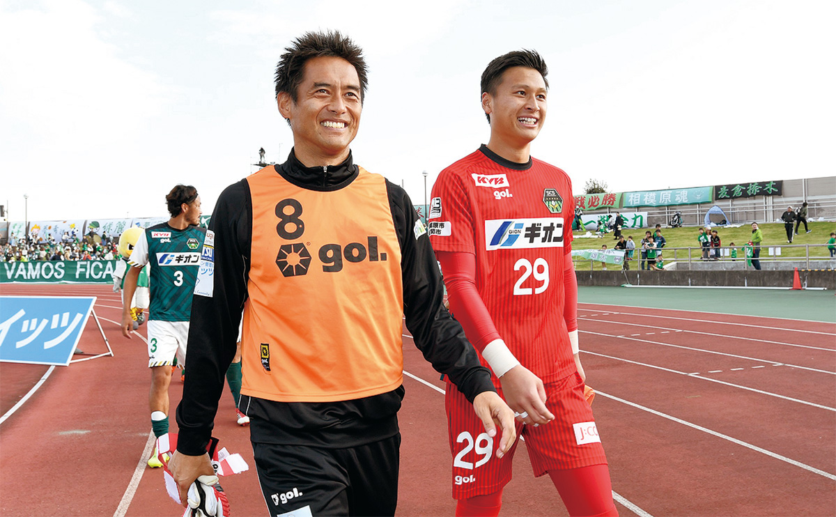 川口がSCに入団したのは2016年。所属していたFC岐阜と契約満了になったところ、声を掛けたのが高校の先輩・望月重良会長だった。「相模原のために力になってほしい。最後にもう一花咲かせよう」。元日本代表・高原直泰が退団し、若手・中堅中心のチームにとって、川口は経験豊富なベテラン選手、クラブの「顔」としての価値を持ち、チームを盛り上げるにはこの上ない存在だった。川口も40歳を迎えてなお、自らを必要としてくれる先輩の気持ちに心が震え、入団を決意した。