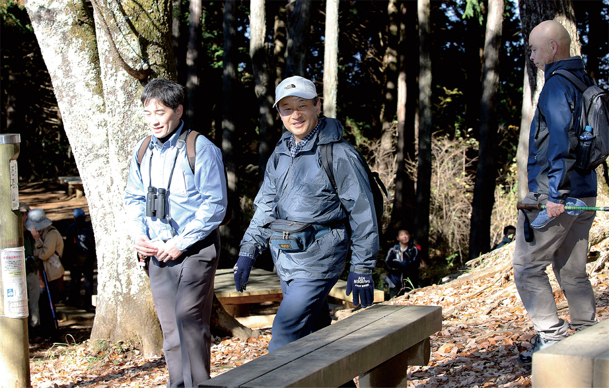市立博物館学芸員の生物担当として市域の動植物調査を行っている秋山幸也さん(51)は、案内役を務めた一人。「話をいただいた時は大変な重責だと感じた」と秋山さんは振り返る。「陛下は、登山をなによりも楽しまれている様子だった。周りの景色を眺めて、『あの山にはいつ、誰と登った』などと話されていた。健脚でかなり山に慣れていらっしゃる様子だった」。山の地質の話題では、プレートの名称が思い出せず秋山さんが言葉に詰まると、「フィリピン海ですか?」と助け舟を出された。秋山さんは「そのお詳しさには驚いた」と当時を思い返す。