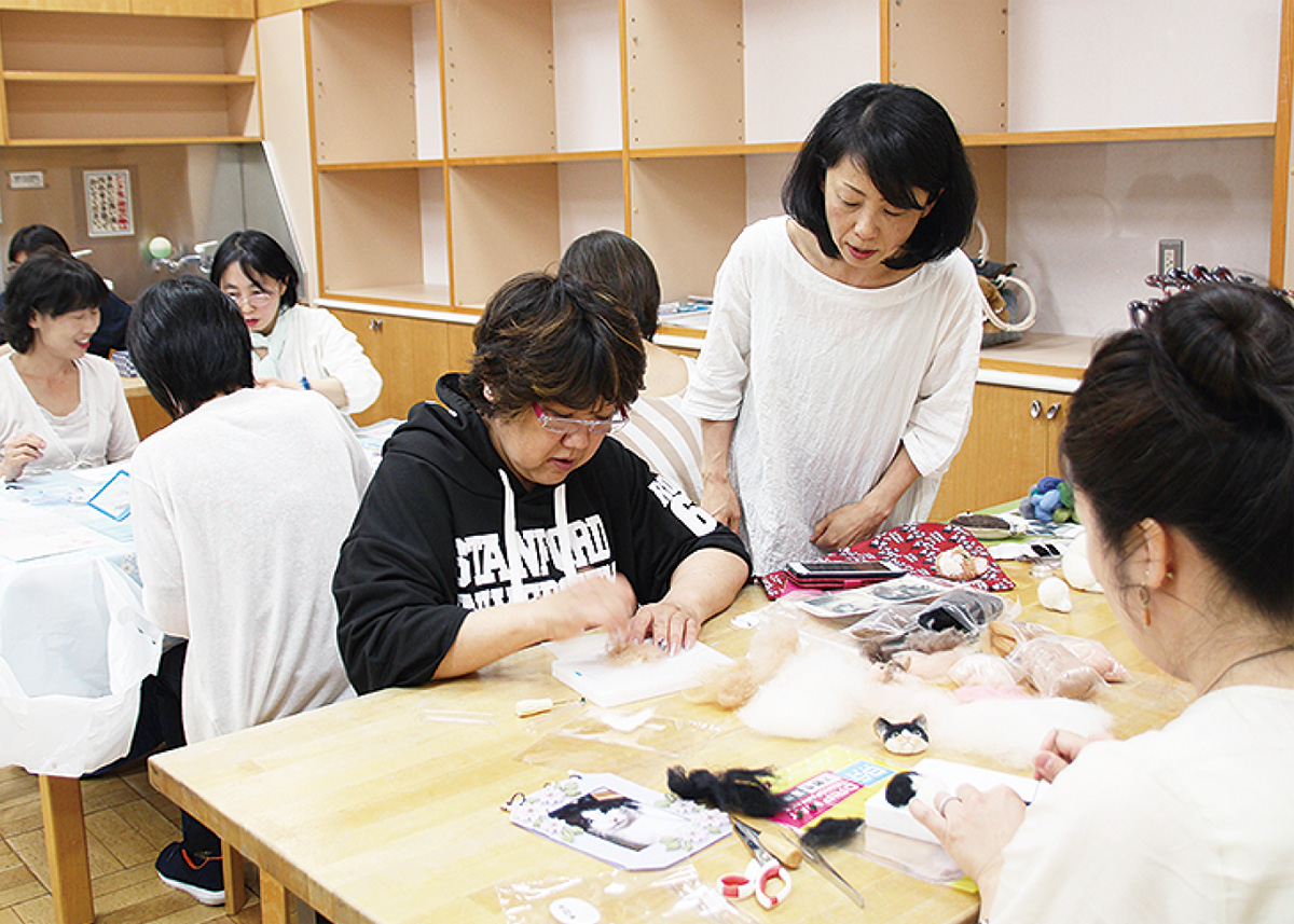 プチマル工房は、毎月第2火曜(6月は29日(土)・30日(日))に、NPO法人サーラが同所で開催している女性の起業応援事業「ゆめひろばプチマルシェ」(物品販売・ワークショップ)に出店している作家6人が結成したグループ。この6人が、羊毛フェルト、パステルアート、手芸、ハーバリウム、フラワーアレンジメントを、飲み物を飲み、話をしながら気軽に楽しめる場として、今回初めて体験講座を開催した。