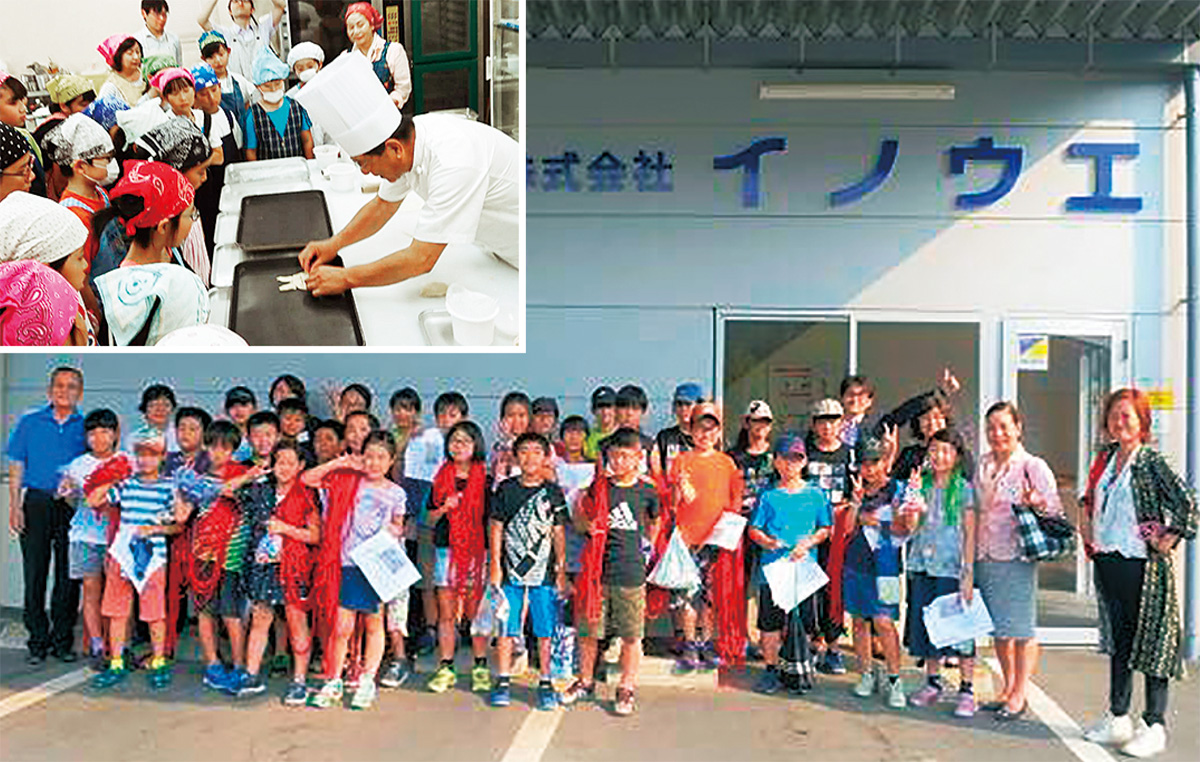 当日は星が丘小学校(中央区)の4〜6年生30人が参加。「(株)オギノパン」の本社工場直売所(長竹)でパン作り体験や工場見学をして昼食をとった後、組紐製造販売の「(株)イノウエ」(鳥屋)に移動しミサンガ作り体験・工場見学を行った。