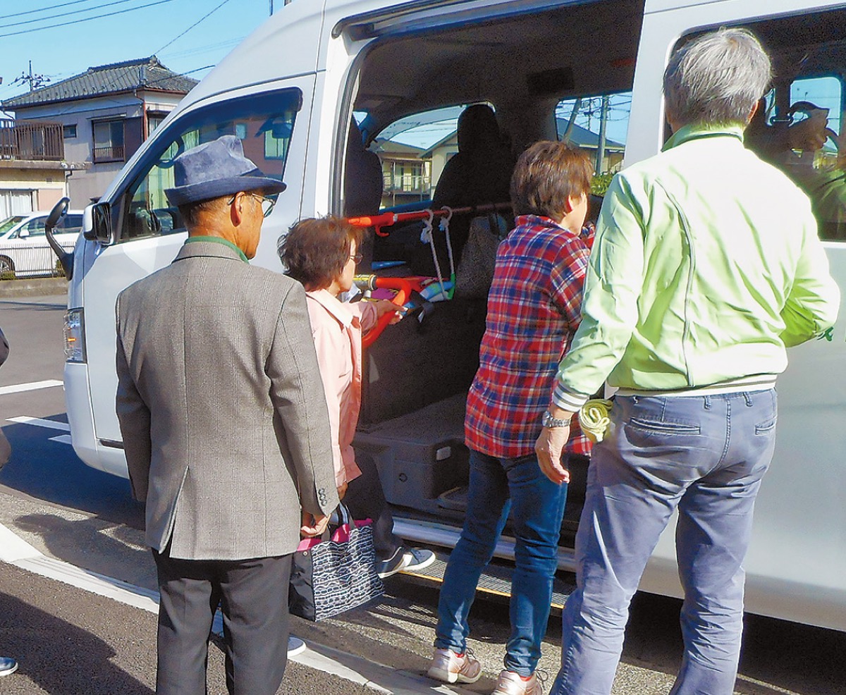 お出かけの”わ”委員会(伊藤勉委員長)=人物風土記で紹介=による高齢者サロンへの初の送迎が20日、行われた。