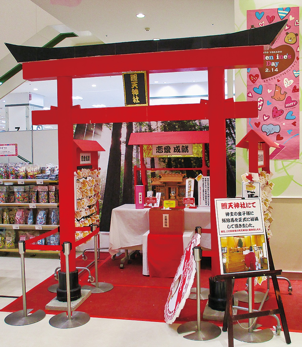 3年前から行っているこの取り組み。今年は、規模をパワーアップして開催する。期間中は、アリオ橋本の橋本駅側口から入ったところに照天神社を設置。合格祈願や恋愛成就などが祈願できる絵馬1000枚(なくなり次第終了)を無料配布する。