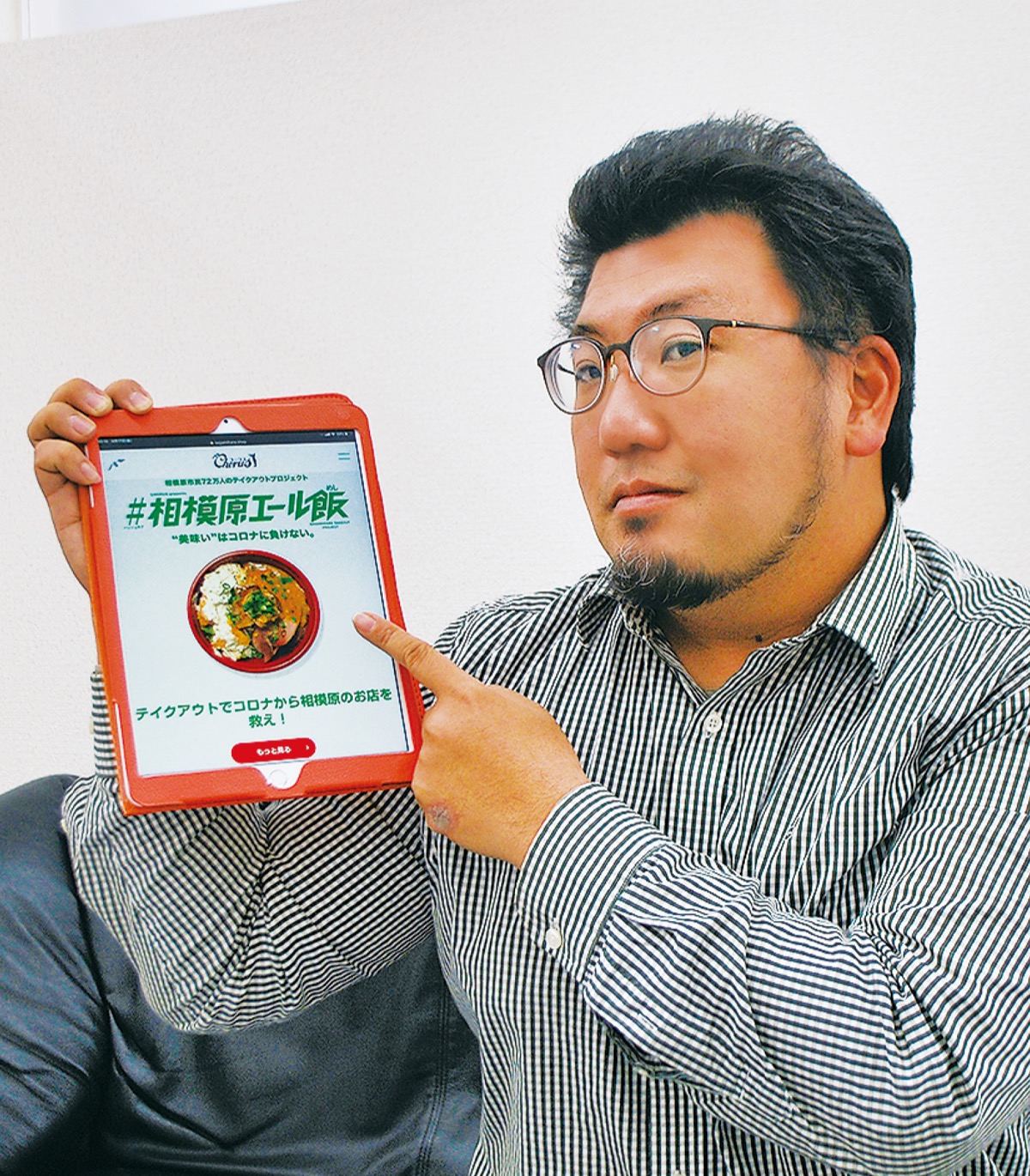 同社はイベントの企画運営などを主な業務としていたが、新型コロナウイルス感染症の拡大を受け、仕事は「ほぼゼロ」になったという。しかし「悲観していても仕方がない」と考えた梶山代表。本業を生かして、地元の飲食店を支援するボランティアを行おうと、デザイン会社であるINIOI、(株)デスケルに協力を呼びかけた。WEB上での会議を繰り返し、「市民とお店をつなぐ」システムの企画に着手。そこで、相模原市との協働事業として運営していた地域情報サイト「CHORUS―コーラス」をリニューアルし、テイクアウト実施店舗の紹介に特化したサイトとすることを思い付いた。