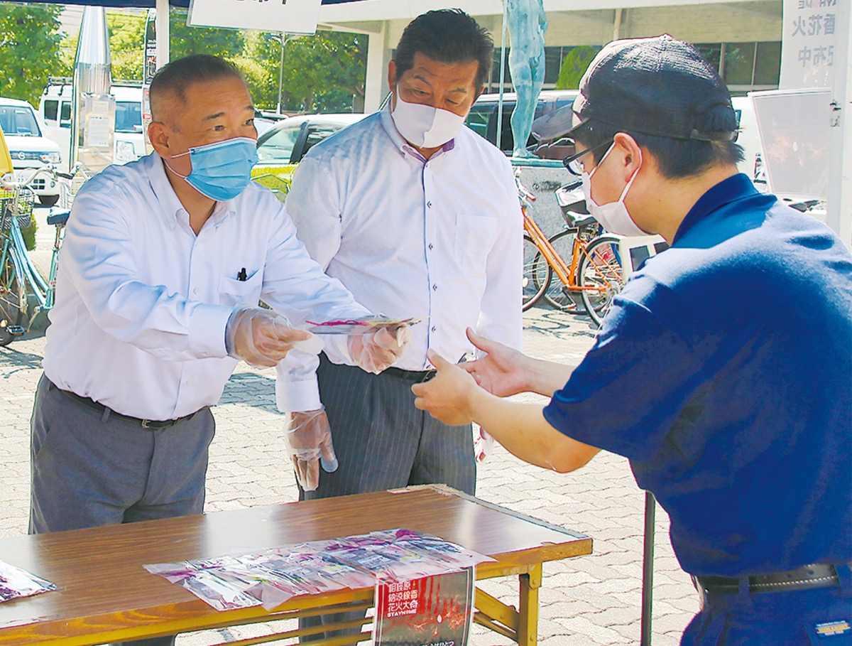 24日は市役所正面玄関前で、線香花火5本入りの袋300セットを配布。本来ならば大会が実施されるはずだった8月第4週の土曜日に合わせて家庭で実施してもらえるよう呼びかけた。公務の合間を縫って配布に参加した本村賢太郎市長は、「すばらしい企画。通常開催は中止になったが、まずは家で花火を楽しんで」と話していた。